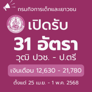 คุณสมบัติเฉพาะตำแหน่ง: ได้รับวุฒิ ป.ตรี ทุกสาขาวิชา