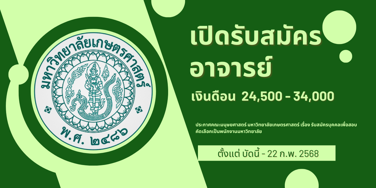 📍 สถานที่สมัคร: สำนักเลขานุการคณะมนุษยศาสตร์ ห้อง 303 ชั้น 3 อาคารจุฬาภรณ์พิศาลศิลป์ คณะมนุษยศาสตร์ ม.เกษตรศาสตร์ บางเขน