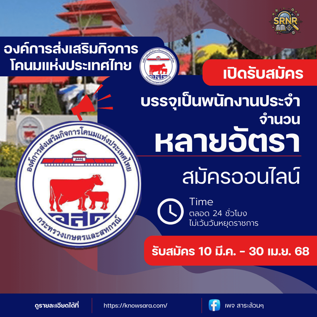 องค์การส่งเสริมกิจการโคนมแห่งประเทศไทย (อ.ส.ค.) เปิดรับสมัครบุคคลทั่วไปเพื่อสอบคัดเลือกและบรรจุเป็นพนักงานประจำในหลายตำแหน่ง รายละเอียดดังนี้