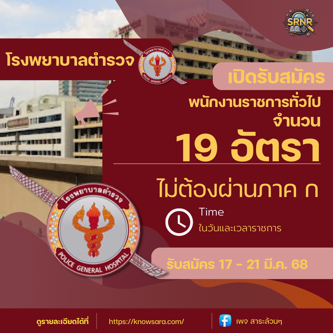 โรงพยาบาลตำรวจ เปิดรับสมัครบุคคลเพื่อเลือกสรรเป็นพนักงานราชการทั่วไป ในตำแหน่งต่างๆ ประจำปีงบประมาณ พ.ศ. 2568 รายละเอียดดังนี้