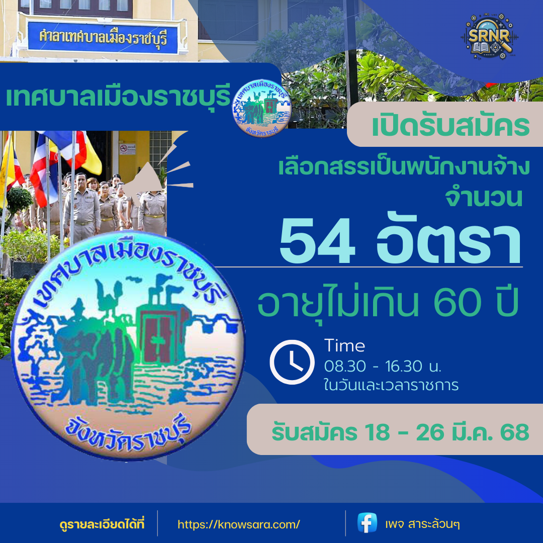 ประกาศรับสมัครงาน เทศบาลเมืองราชบุรี ปี 2568