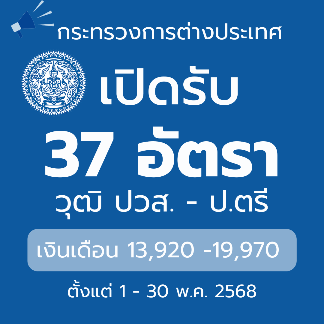 กระทรวงการต่างประเทศ เปิดรับสมัครสอบแข่งขันเพื่อบรรจุและแต่งตั้งบุคคลเข้ารับราชการในปี 2568 รวม 3 ตำแหน่งสำคัญ ได้แก่ นักวิชาการเงินและบัญชีปฏิบัติการ นักวิเคราะห์นโยบายและแผนปฏิบัติการ และเจ้าพนักงานธุรการปฏิบัติงาน รวมทั้งหมด 37 อัตรา