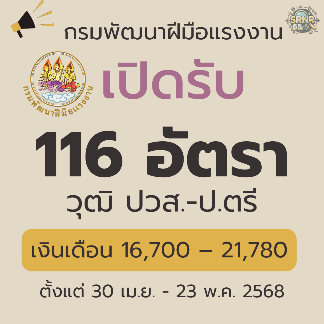 กรมพัฒนาฝีมือแรงงาน เปิดรับสมัครพนักงานราชการ 116 อัตรา สมัครออนไลน์ได้แล้ววันนี้!