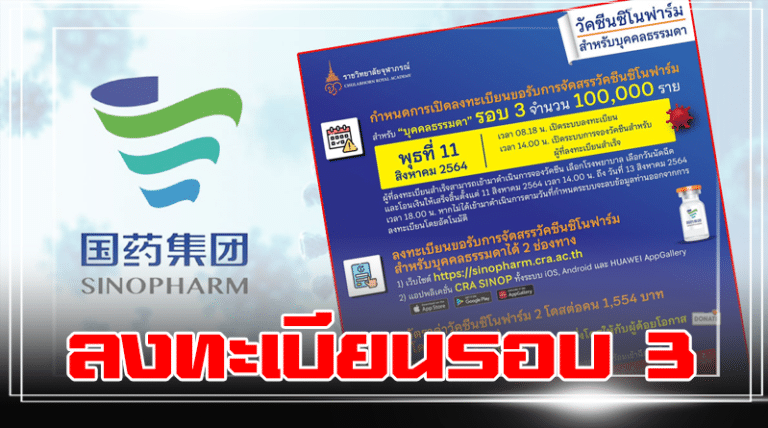 ลงทะเบียนที่นี่! เปิดจอง “ซิโนฟาร์ม” รอบ 3 พรุ่งนี้ เช็กเงื่อนไขด่วน