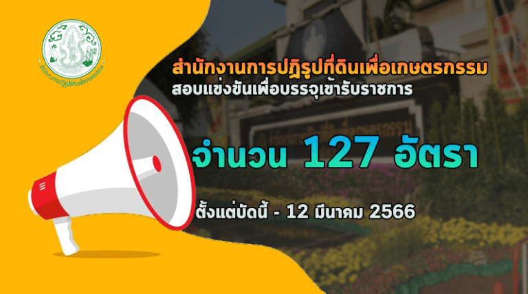 สํานักงานการปฏิรูปที่ดินเพื่อเกษตรกรรม รับสมัครสอบแข่งขันเพื่อบรรจุเข้ารับราชการ 127 อัตรา