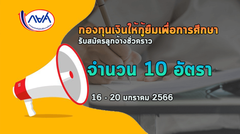 กองทุนเงินให้กู้ยืมเพื่อการศึกษา (กยศ) เปิดรับสมัครลูกจ้างชั่วคราว 10 อัตรา ตั้งแต่วันที่ 16 – 20 มกราคม 2566